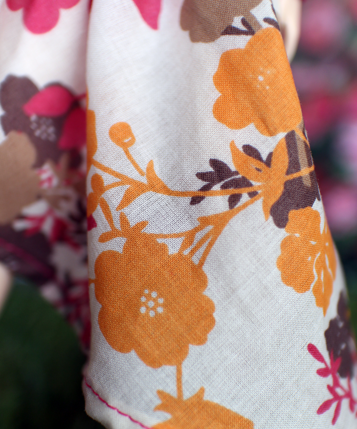 - Printed asymmetrical skirt with waistband, closes at back with snap button.