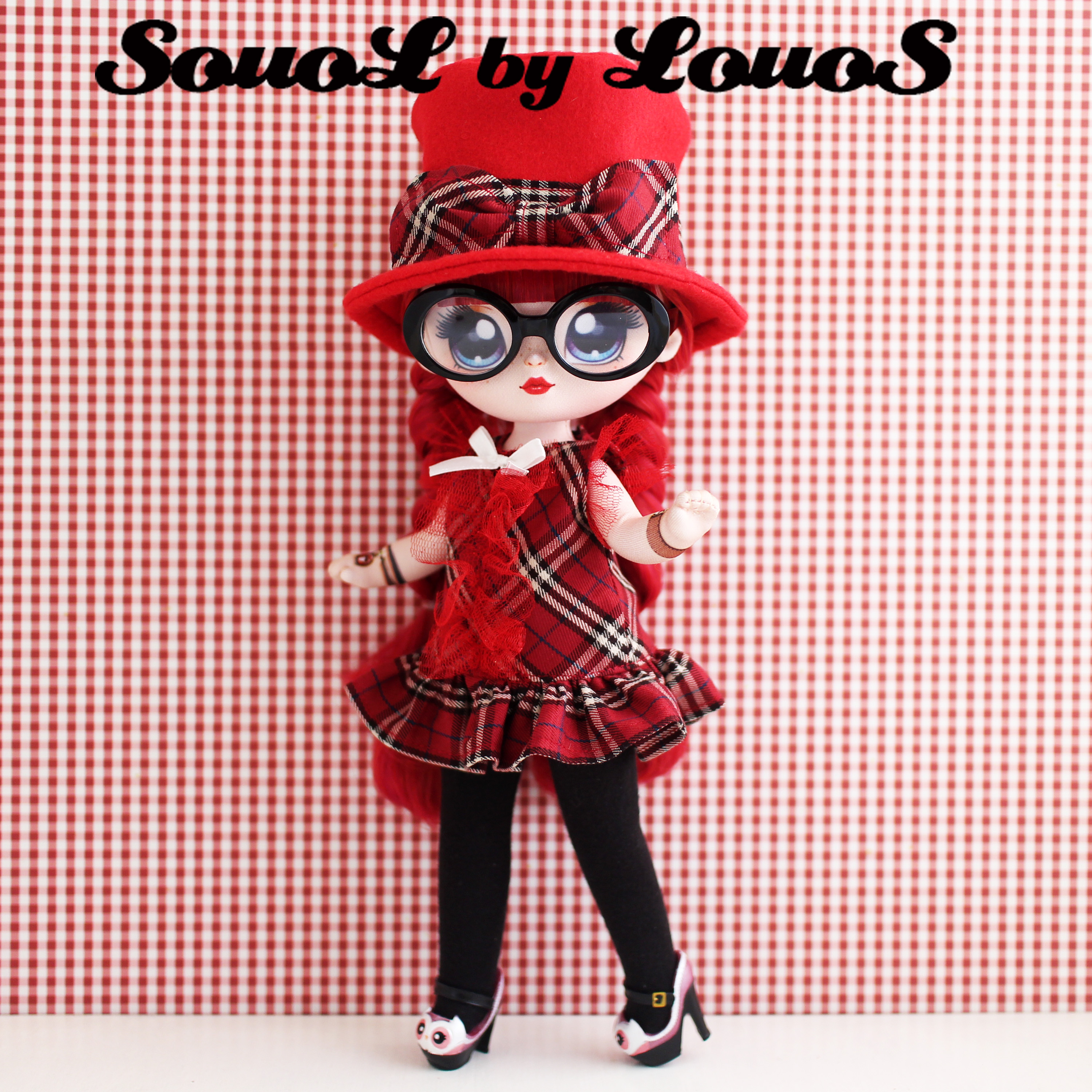 - Felt top hat with matching plaid bow.