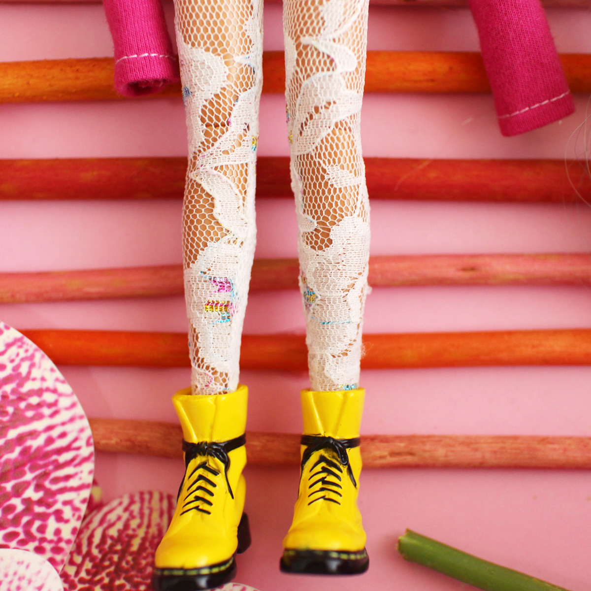 - Pair of lace rainbow foil tights.